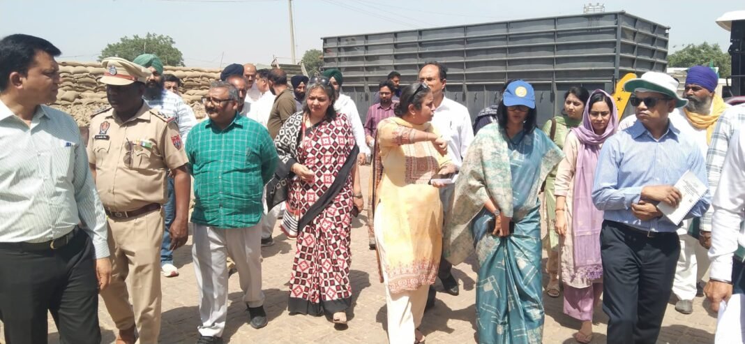 **अमृतसर, 24 अप्रैल (गगनदीप)– भारत सरकार के खाद्य एवं सार्वजनिक वितरण मंत्रालय की अतिरिक्त सचिव श्रीमती अपर्णा भाटिया ने आज जिला अमृतसर की टंगरा अनाज मंडी का दौरा कर गेहूं की चल रही खरीद का जायजा लिया। इस अवसर पर खाद्य एवं नागरिक आपूर्ति विभाग के सचिव श्री वरिंदर कुमार, अतिरिक्त उपायुक्त (जनरल) श्री रोहित गुप्ता, एसडीएम बाबा बकाला श्री रजनीश कुमार, जिला खाद्य एवं नागरिक आपूर्ति नियंत्रक श्रीमती हरवीन कौर सहित विभिन्न खरीद एजेंसियों के अधिकारी भी उपस्थित थे।